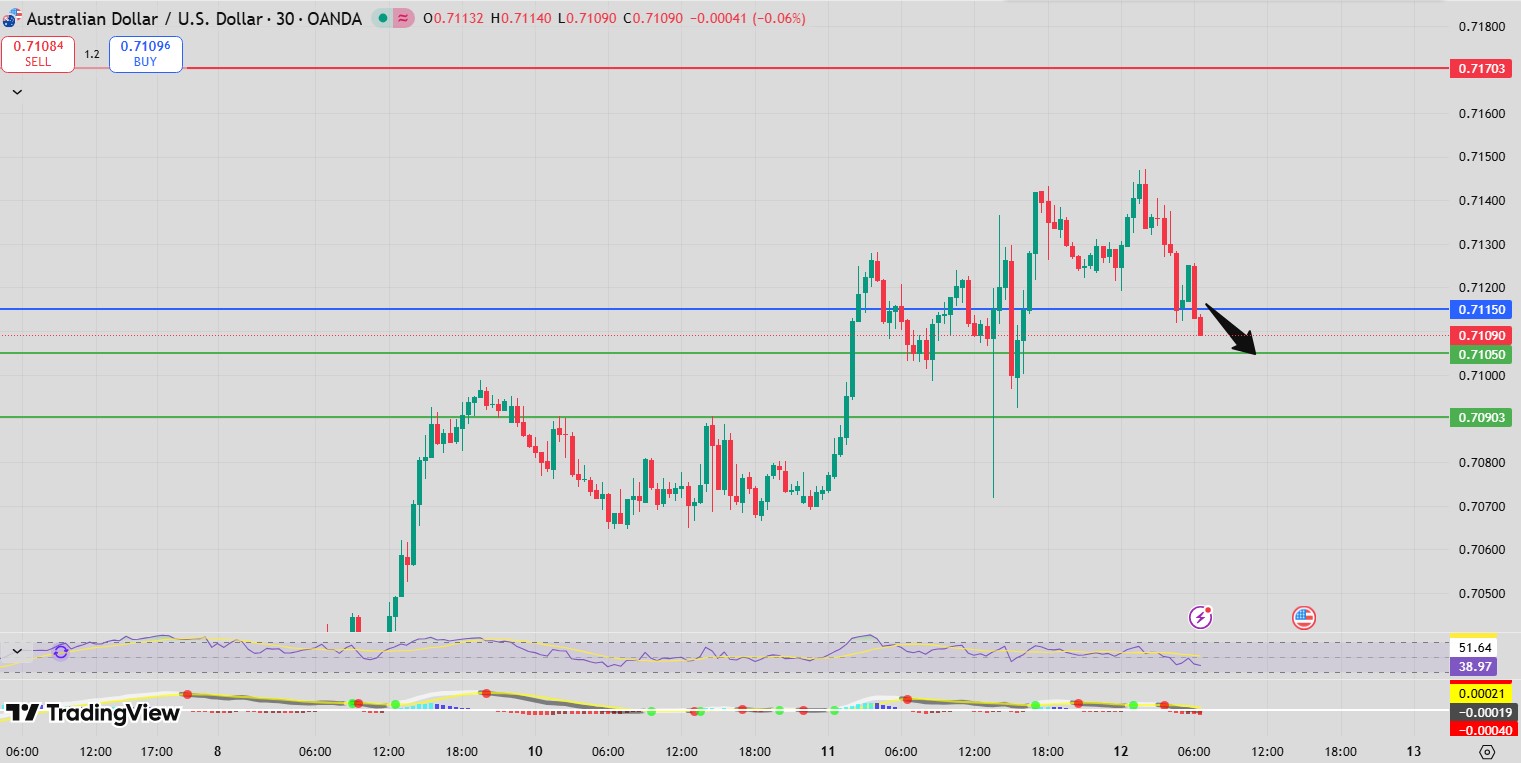 Alternatively, a sustained move above 0.7150 would invalidate the bearish setup and open the path toward 0.7170 and 0.7190, where higher resistance levels are positioned.
