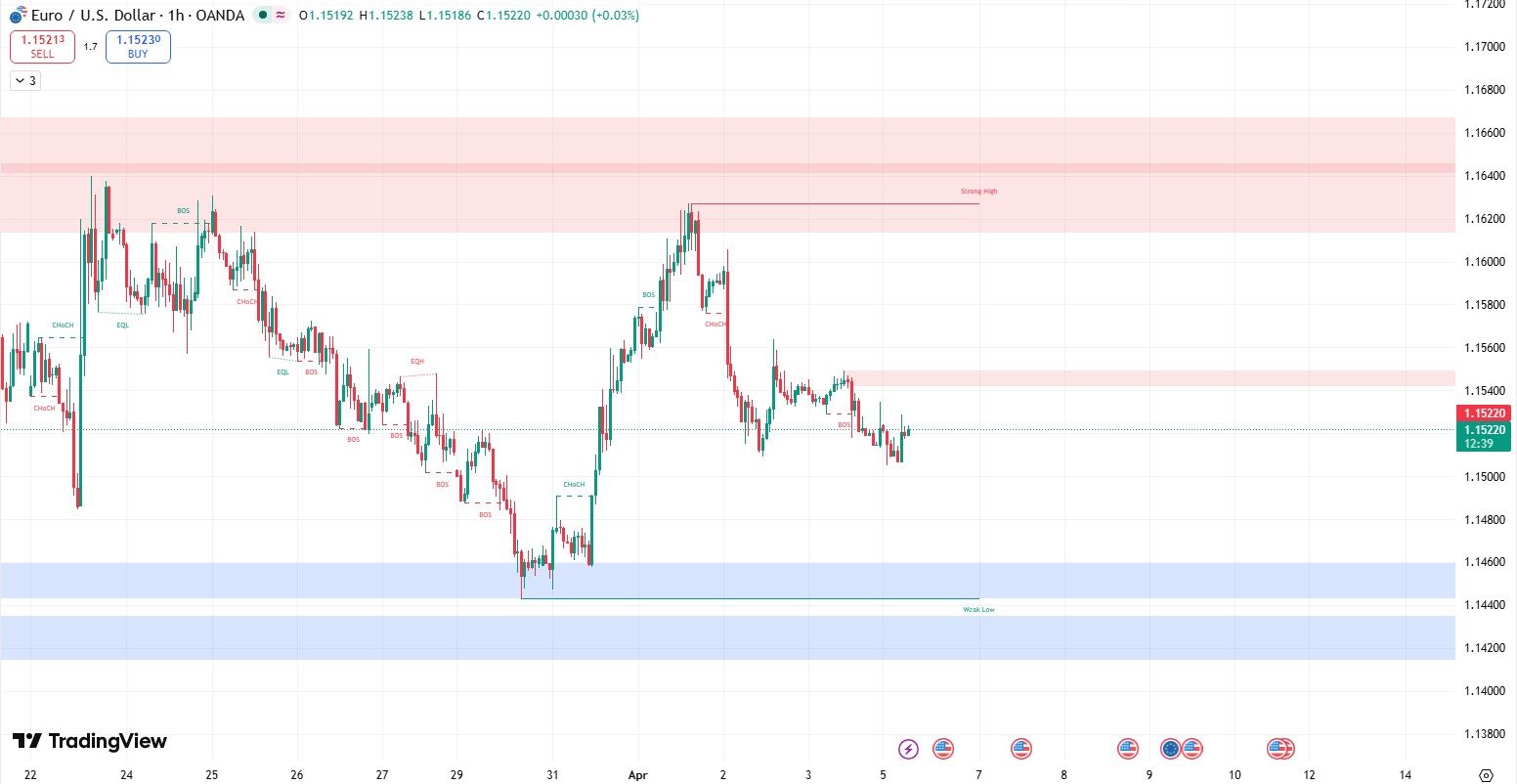 Additionally, there is a weak low around 1.1500–1.1480, which suggests liquidity is still resting below. In such conditions, the market typically seeks to sweep that liquidity before any meaningful reversal.