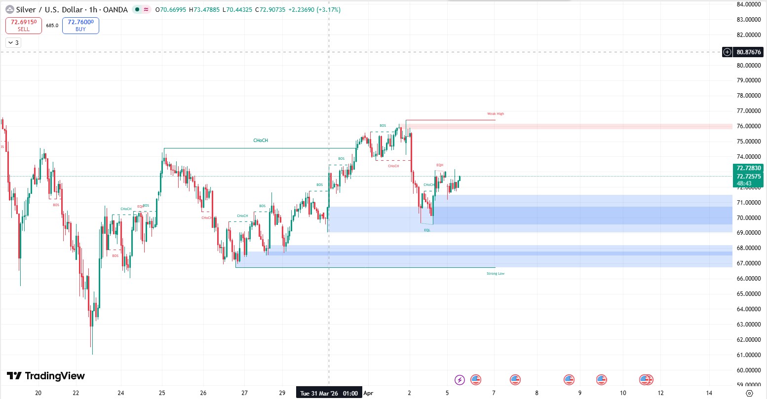 Silver (XAGUSD) Intraday Signal: Buy from 71.00 Zone
