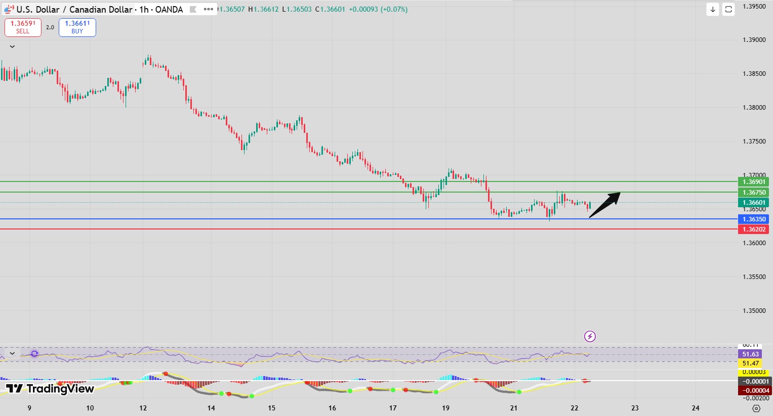 USD/CAD holds above 1.3635, targeting 1.3675 and 1.3690 as RSI shows limited downside momentum.