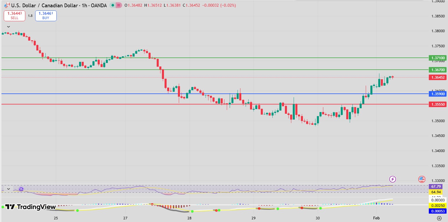 Alternatively, a break below 1.3590 would weaken the bullish setup and expose downside levels at 1.3555 and 1.3520.