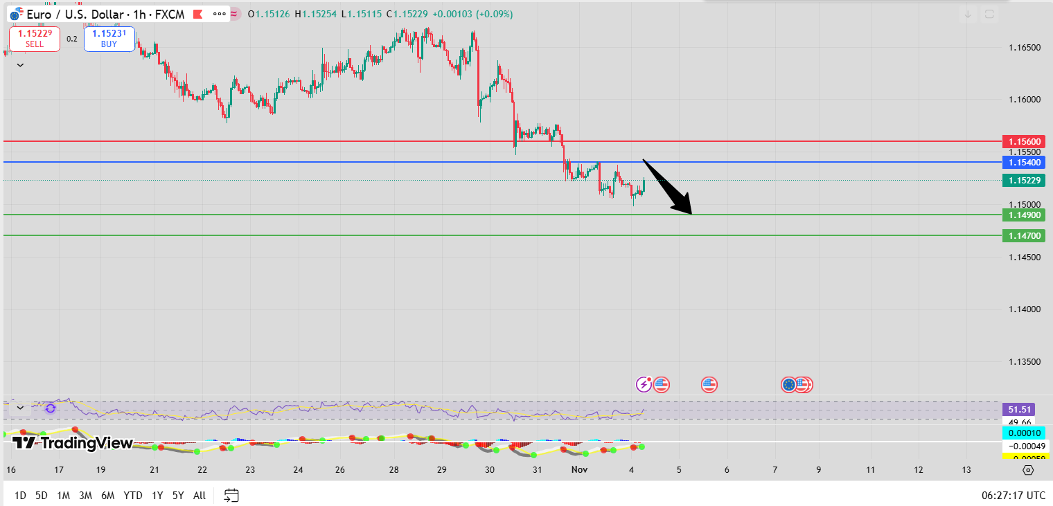 FXNOVA Strategy – EUR/USD Bearish Bias Below 1.1540